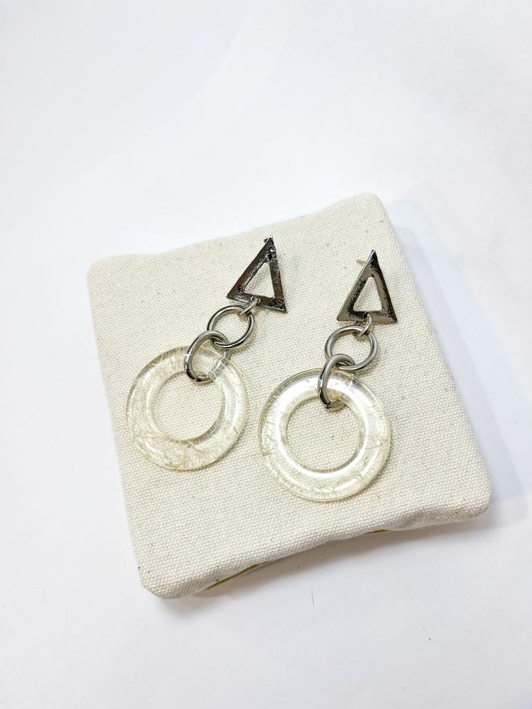 Brinco de metal e resina, apenas na cor prata.