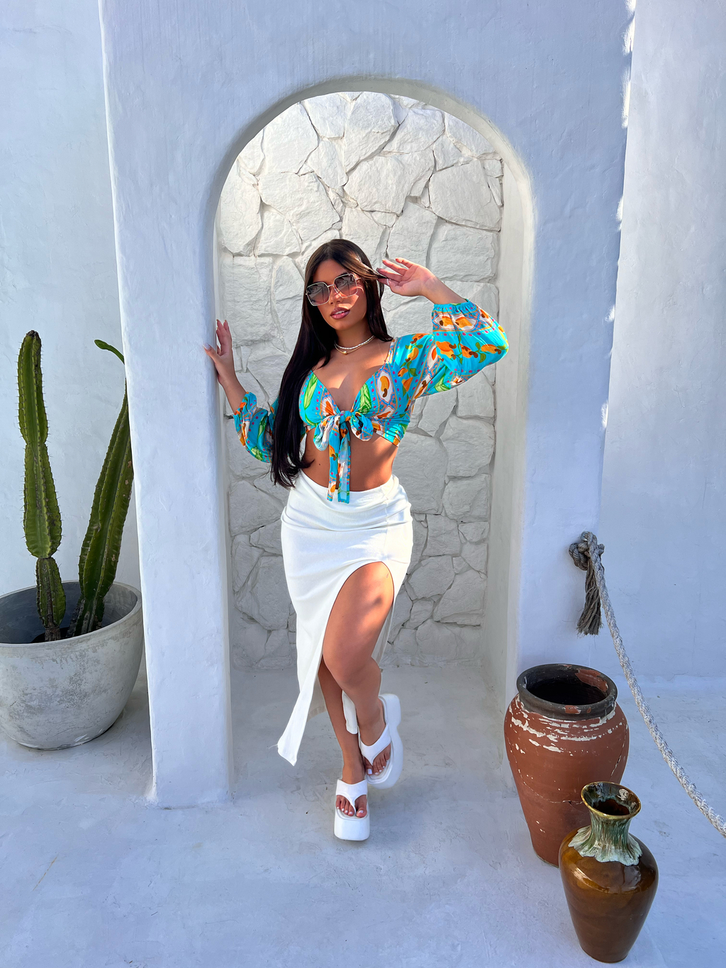 O Cropped Caju é a peça perfeita para quem deseja aliar estilo e conforto. Com um design cropped e mangas longas, sua confecção em tecido viscose garante uma leveza excepcional, ideal para os dias mais quentes. Apresentando um estampado vibrante, esse cropped é versátil e se adapta a diferentes ocasiões, desde um passeio casual até um evento especial.